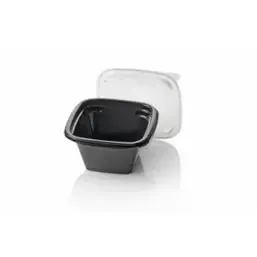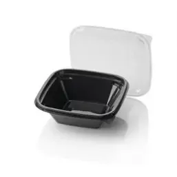 Deze saladebakken zijn lichtgewicht en stevig, waardoor ze ideaal zijn voor het veilig vervoeren en presenteren van uw gerechten. De transparante deksels zorgen voor een aantrekkelijke presentatie en houden de inhoud vers. De stijlvolle zwarte kleur past bij elke gelegenheid, van horeca tot catering en afhaalmaaltijden.