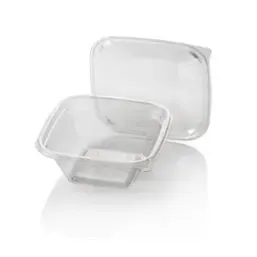 Onze rechthoekige saladebakken van PET-materiaal zijn ideaal voor het verpakken en presenteren van salades en andere gerechten. Met een inhoud van 1000cc en afmetingen van 190 x 190mm bieden deze bakken voldoende ruimte voor uw culinaire creaties.