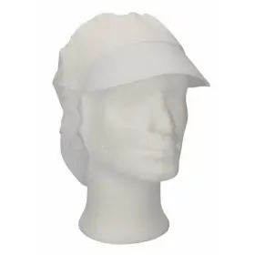 CMT Pet with Visor and Hair Catch - Essential workwear for the hospitality and food industry, made from durable and breathable polyester and cotton. Features a visor for sun protection and a hair catch system for hygiene. The white color offers a professional look, and size L fits most head sizes. Each box contains 10 pieces, providing a cost-effective solution for businesses. Stay stylish, comfortable, and hygienic with this product for your team.