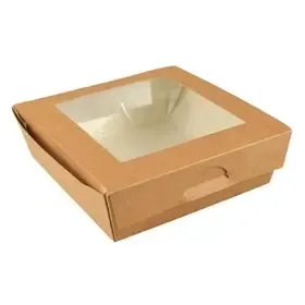 With a rustic brown exterior and a fresh white interior, these boxes offer a professional presentation. The cardboard is strong enough to hold heavy food products without bending or breaking and is also moisture-resistant, perfect for wet food products.