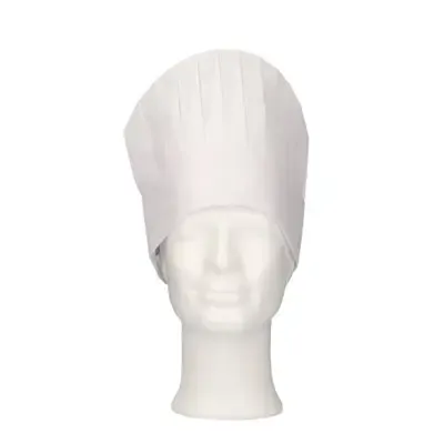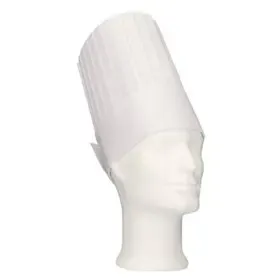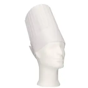 CMT Chef Hat Grande Lux Viscose with Perforated Crown 30cm - An essential part of professional kitchen attire, this chef hat is made of high-quality non-woven viscose for a professional look and hygiene by preventing hair from falling into food. Featuring a perforated crown for ventilation and a 30cm height for a striking appearance, it's ideal for restaurants, hotels, catering companies, and buffets. Available in packs of 10 and 50 for easy distribution and storage, it's a must-have for any food service environment.