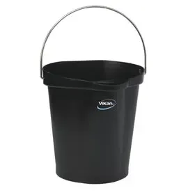 Vikan Bucket 12 Liters - The Vikan Bucket with a 12-liter capacity is perfect for various applications. Made of durable polypropylene and stainless steel, it is resistant to wear and corrosion. The elegant black color adds a modern touch to your cleaning tools. Ideal for cleaning tasks, food preparation in professional kitchens, and gardening needs. This versatile bucket is designed for durability and convenience in professional environments. Get the Vikan Bucket 12 Liters for your cleaning, food preparation, or gardening needs.