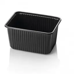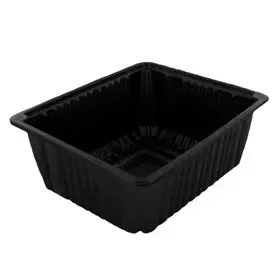 - Mooie mat zwarte maaltijdbak die met warme of koude maaltijden dicht geseald kan worden met een Enterpack folie en sluitmachine