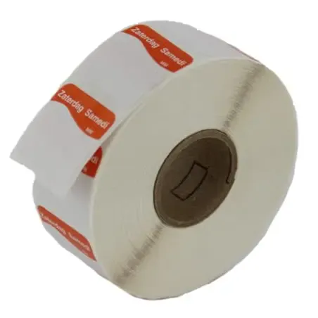 The Rotating Labels Writable - Day Stickers are made of a durable material that is resistant to water, dust, and other weather conditions. This makes them ideal for use in various environments, such as supermarkets, bakeries, butchers, restaurants, and cafeterias.