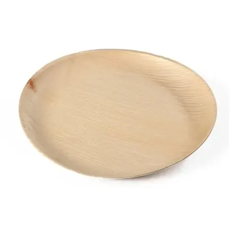 Palm plates Ø 150 x 20mm - These plates are a sustainable choice for businesses prioritizing eco-friendliness. Made from fallen palm leaves, they are 100% natural and compostable, offering a perfect alternative to traditional disposable options. With a unique design and sturdy construction, they are ideal for serving appetizers, desserts, and small side dishes. Microwave and freezer safe, these plates are versatile for both hot and cold dishes, blending functionality and aesthetics for a unique dining experience while reducing ecological footprint.