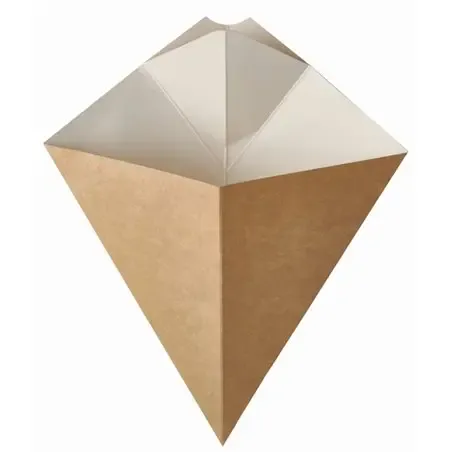 Our chip bags are a must-have for any hospitality establishment. Made from 235 gram virgin cardboard, they offer a sturdy and heat-resistant packaging without recycled materials. With a capacity of 150 grams, these cardboard cone bags are perfect for generous portions of fries.