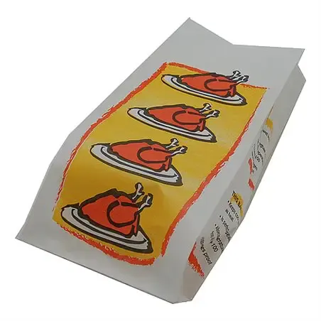 Chicken Bag 1 Chicken PP Coated 130 + 65 x 265mm - This Chicken Bag is perfect for packaging one whole chicken. The PP coated bag is sturdy and durable, ideal for poultry shops, butcher shops, and the food industry. Meeting all hygiene and food safety requirements, this moisture-resistant bag provides excellent protection for your product. Suitable for carrying hot chickens, it ensures safe and hygienic packaging. Upgrade your packaging with our Chicken Bag to guarantee the quality of your chicken products.