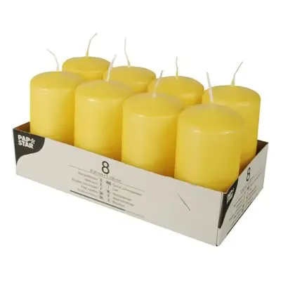 Gold Yellow Pillar Candles Ø 50 x 100mm 16 Hours Burning Time Papstar
