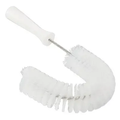 The Vikan Medium External Pipe Cleaner Hand Model - Steel Model in white is a powerful cleaning tool for external pipes and pipelines. This pipe cleaner features a sturdy handle for easy operation and is equipped with polyester fibers with a diameter of ø35mm, making it ideal for larger pipes.