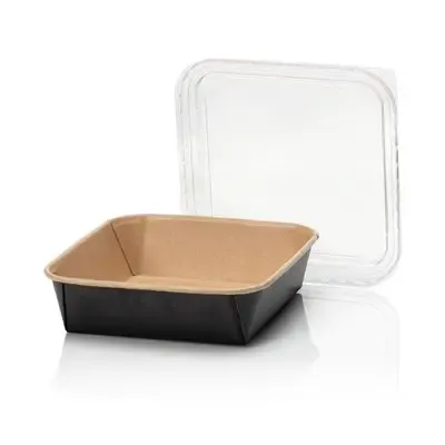 Kraft Containers 1000ml Brown/Black 175 Series Square - Environmentally conscious packaging with a 1000ml capacity, ideal for various dishes. The kraft material offers a natural look, while the black exterior adds elegance. Optional PP lids make these containers perfect for both hot and cold dishes.