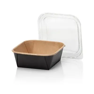 Kraft Containers 500ml Brown/Black 129 Series Square - Discover the versatility of these square Kraft containers. With a capacity of 500ml, they are ideal for packaging various food products. Made from strong and durable kraft cardboard, they feature an attractive brown interior and a stylish black exterior. Matching PP lids are available for added convenience. These containers are an eco-friendly choice, perfect for caterers, takeaways, and food service businesses seeking high-quality, sustainable packaging.