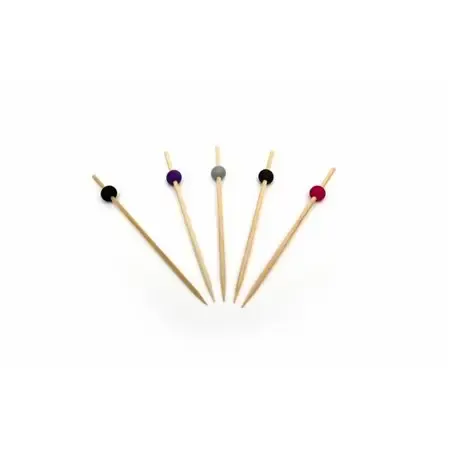 These bamboo picks are ideal for stylishly serving small appetizers and snacks. Each pick has a colorful ball on top, adding a playful and cheerful accent. With a length of 120mm, they are perfect for parties, picnics, and events.