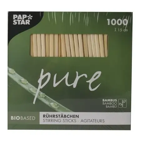 Bamboo Stirrers "Pure" - A sustainable and stylish choice for businesses seeking eco-friendly alternatives to plastic stirrers. Made from 100% natural bamboo, these 150mm long and 3mm thick stirrers are perfect for hot and cold drinks. With their biodegradable nature and rustic charm, they demonstrate your commitment to the environment. Available in various sizes, these stirrers are ideal for cafes, restaurants, hotels, and catering businesses. Make the switch to Bamboo Stirrers "Pure" and make a responsible choice for your business and the planet.