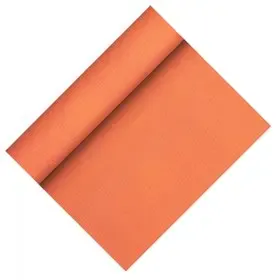 Table Runner Red Non Woven "Textile Character" "Soft Selection" 24 meters x 400mm - This table runner from the "Soft Selection" collection is a beautiful addition to any table setting. Made of 100% polypropylene, it combines the aesthetics of cloth with the durability of synthetic materials. With a width of 40 cm and a length of 24 meters, it's ideal for events of any size. Perforated into 20 sections for easy customization, this tear-resistant and moisture-resistant runner is also environmentally friendly and recyclable. Complete with a tactile fleece piece and coordinated colors, it's perfect for businesses seeking high-quality table decoration.