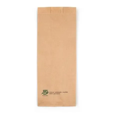 The Paper Snack Bags 1.5 Pound "100% FAIR" 110 x 80 x 270mm are the perfect choice for businesses that value sustainability and responsible production. Made from FSC-certified paper, these bags come from responsibly managed forests. The 100% Fair logo confirms production with respect for people and the environment.