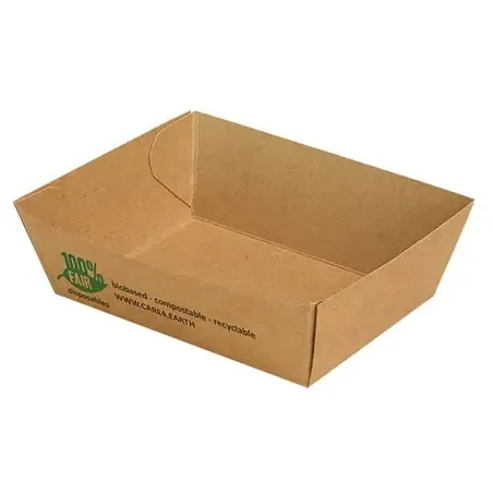 Snack Box A7 Cardboard "100% FAIR" - An excellent choice for businesses valuing sustainability and quality. Made of high-quality brown cardboard, these snack boxes are part of the 100% FAIR series. FSC certified with a biodegradable coating and featuring the 100% FAIR logo, they are ideal for serving a variety of snacks. Sized at 90 x 70 x 35mm, they are aesthetically pleasing and sturdy, ensuring your snacks stay fresh and delicious. Choose the Snack Box A7 Cardboard "100% FAIR" for an environmentally conscious and high-quality packaging solution.