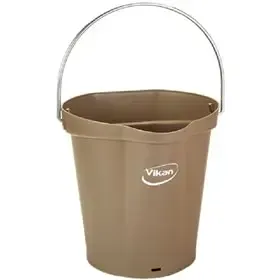 Vikan Hygiene Bucket with Pouring Spout - Brown - Measurement Scale - 6 liters - This durable plastic bucket is essential for professional cleaning, featuring a clear measurement scale for accurate liquid measurements and a pouring spout for controlled pouring. Its ergonomic handle ensures comfortable carrying, and the color-coding option aids in task separation, making it ideal for various industries seeking efficiency and hygiene.