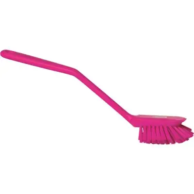 Vikan Medium Dishwashing Brush - This brush features durable polyester fibers, perfect for cleaning dishes and surfaces. With dimensions of 280x60x55mm, it fits comfortably in your hand. Add a touch of color to your routine with this pink brush, ensuring reliable performance for various cleaning tasks.
