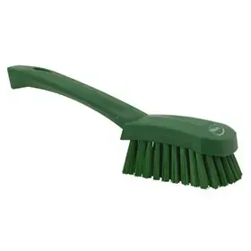The Vikan Narrow Medium Dishwashing Brush with polyester fibers is ideal for cleaning dishes and other surfaces. Its slim design and dimensions of 290x25x65mm make it convenient for precise cleaning tasks.