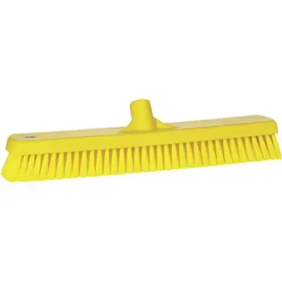 The Vikan Hard Wide Floor Scrubber in yellow is designed for effective floor cleaning. With hard polyester fibers and a fiber length of 43mm, this floor scrubber is ideal for scrubbing hard floors and removing stubborn dirt.