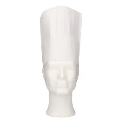 Deze koksmuts is een onmisbaar item in elke professionele keuken. Gemaakt van licht, ademend papier, biedt het comfort en functionaliteit tijdens lange uren in de keuken. De kroon zorgt voor een goede pasvorm en de zweetband houdt zweet weg van het gezicht. Ideaal voor horeca, catering en buffet. Verkrijgbaar in verpakkingen van 50 of 250 stuks, een kosteneffectieve keuze voor bedrijven van elke omvang. Deze wegwerpbare muts bevordert de hygiëne en voedselveiligheid, terwijl het je team een professionele uitstraling geeft.