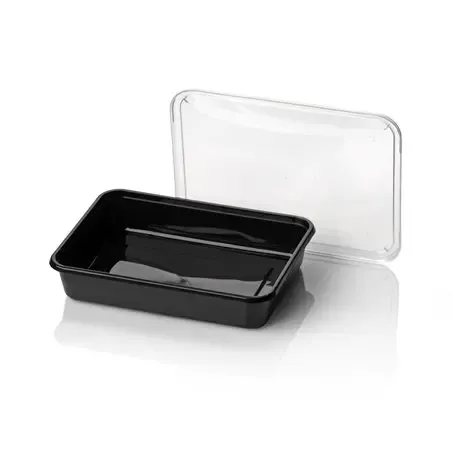 Deze magnetron-maaltijdbakken zijn perfect voor restaurants en cateraars. Met een inhoud van 500cc en een formaat van 183 x 135 x 35mm, zijn ze ideaal voor het bewaren en opwarmen van maaltijden. De bakken zijn gemaakt van duurzaam materiaal en zijn herbruikbaar. Ze zijn gemakkelijk te stapelen en op te bergen, wat het organiseren van voedsel eenvoudiger maakt. Let op: deksels zijn niet inbegrepen. Deze zwarte bakken geven een professionele en moderne uitstraling aan jouw voedselverpakkingen.