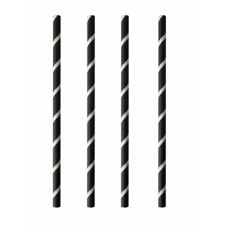 Deze zwart-wit gestreepte papieren milkshakerietjes met een diameter van Ø 8mm en een lengte van 20cm zijn een stijlvol en milieuvriendelijk alternatief voor plastic rietjes. Gemaakt van duurzaam en composteerbaar materiaal, bieden ze een verantwoorde oplossing voor het serveren van milkshakes en andere drankjes.
