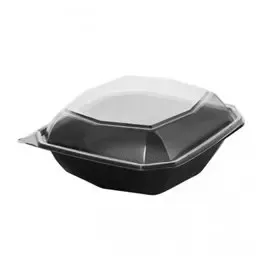 De Octaview Schalen PS Zwart met vaste transparante deksels zijn perfect voor het presenteren en bewaren van diverse gerechten. Gemaakt van hoogwaardig PS-materiaal, bieden deze schalen duurzaamheid en een stijlvolle uitstraling.