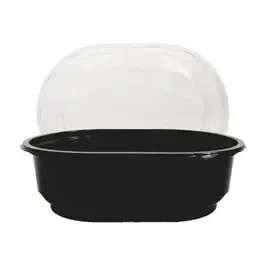 Saladebakjes 150cc Ellips Ovaal PET Zwart + Deksels 146 x 106 x 28mm