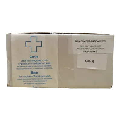 Damesverbandzakjes papier Papieren Zakjes 27,5 x 11,5 x 7,5 cm Verpakking 1.000 zakjes