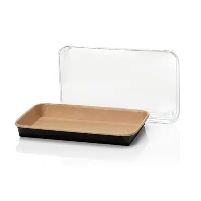 Kraft Sushi Tray Bruin/Zwart 221 x 138 x 24mm + PET Deksels