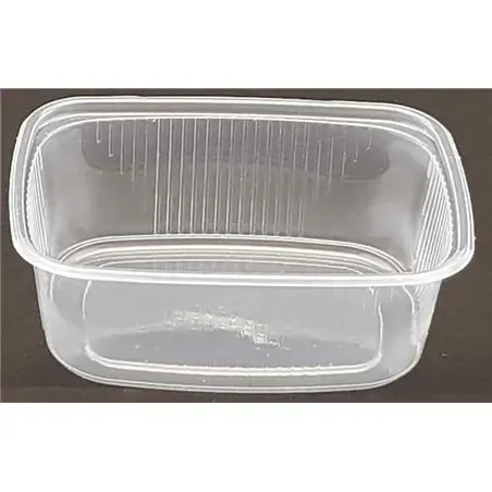 Deze rechthoekige saladebakjes zijn gemaakt van hoogwaardig PP materiaal en geschikt voor bevriezing en magnetron. De geribbelde uitvoering is budgetvriendelijk en verkrijgbaar in verschillende maten. Ideaal voor horeca, delicatessenwinkels en cateringbedrijven om salades, sauzen en olijven professioneel te presenteren. Klanten kunnen gemakkelijk zien wat erin zit dankzij het transparante materiaal. Kies de juiste maat voor elk product en geniet van de stevigheid en duurzaamheid tijdens transport en presentatie. Ontdek het gemak en de kwaliteit van deze handige verpakkingsoplossing!
