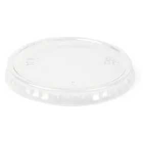 Platte Deksels voor Portiebekers "Pure" van PLA, Rond Ø 60mm Transparant Deze deksels, gemaakt van PLA, een biologisch afbreekbaar en composteerbaar materiaal, zijn ontworpen voor onze Portiebekers van PLA met een diameter van 60mm. Ze zijn transparant, waardoor de inhoud van de beker gemakkelijk zichtbaar is. De deksels zijn stevig en duurzaam, en hebben geen invloed op de smaak van het voedsel of de drank. Een duurzame keuze voor jouw bedrijf, die bijdraagt aan een positieve ervaring voor jouw klanten.