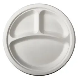 De Borden Suikerriet 3-vaks Ø 260mm zijn de ideale keuze voor bedrijven die milieuvriendelijk tafelgerei zoeken. Gemaakt van bagasse, een bijproduct van suikerriet, zijn deze borden zowel duurzaam als biologisch afbreekbaar. Dit maakt ze perfect voor bedrijven die hun ecologische voetafdruk willen verkleinen.
