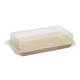 Sushi schalen Palmblad Rechthoekig 100cc H 4,3 x 18,4 x 10,4cm Natuur Combiverpakking met RPET Deksels.