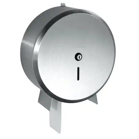 Deze stijlvolle en duurzame toiletdispenser is gemaakt van roestvrij staal en geschikt voor grote rollen toiletpapier. Ideaal voor drukbezochte locaties.