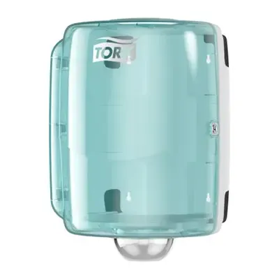 De Tork Combi Rol Poetspapier Dispenser is een essentieel onderdeel van elke professionele omgeving. Deze dispenser, onderdeel van de Performance-Line en het W2-systeem, is ontworpen om poetsrollen die vanuit de kern afrollen te accommoderen. Het is een combinatie van functionaliteit en stijl, met een aantrekkelijke wit-turquoise kleurstelling en een robuuste constructie van metaal en kunststof.