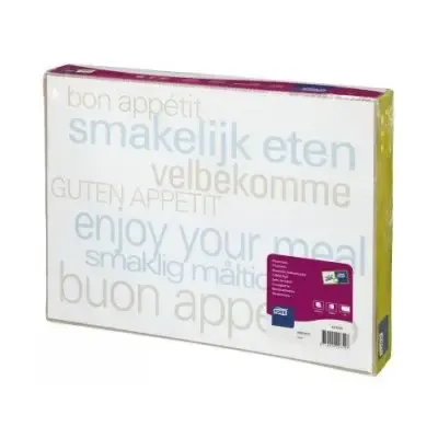 De Tork Placemat Text Advanced beschermt jouw tafel tegen vuil en vlekken met stijl. Deze hygiënische placemats zijn perfect voor informele restaurants en volgen een kleurthema. Met de tekst 'eet smakelijk' in verschillende talen zijn ze een uniek gespreksonderwerp. FSC-gecertificeerd en 42x30cm groot, ideaal voor elke eettafel. Licht, gemakkelijk te hanteren en duurzaam. Een essentiële toevoeging aan elke eetgelegenheid.
