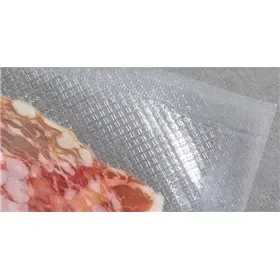 Vacuüm Folie Met Structuur Zijlas OP ROL 200mm x 6 Meter 90my Deze vacuüm folie op rol is een onmisbaar hulpmiddel voor bedrijven in de voedselverpakking. Met een dikte van 90 micron en een breedte van 200mm, biedt het een robuuste en duurzame oplossing voor het vers houden van voedsel. De gestructureerde binnenkant is ideaal voor vacuümmachines zonder binnenkamer. De rol is gemakkelijk aan te passen aan de gewenste zakgrootte, wat zorgt voor efficiëntie en minder verspilling. Een betrouwbare keuze voor het maximaliseren van de houdbaarheid van voedsel.