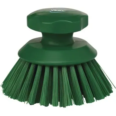 De Vikan Ronde Harde Werkborstel met polyester vezels in de kleur groen is een krachtige borstel die ideaal is voor zware schoonmaaktaken. Met een diameter van ø 110x110mm biedt deze borstel voldoende oppervlakte om efficiënt en grondig te reinigen.