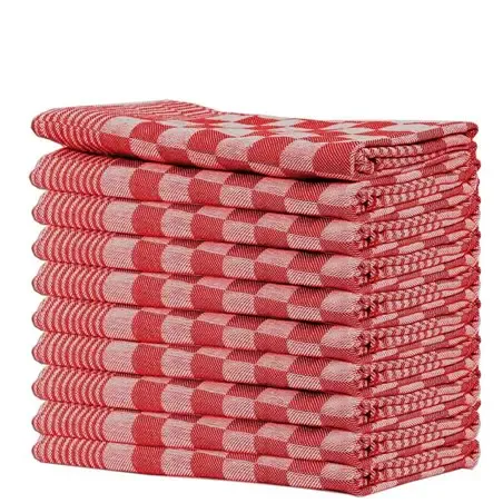 Deze set theedoeken is onmisbaar in elke keuken. Met een rood geblokt patroon en gemaakt van hoogwaardig katoen, zijn deze theedoeken van topkwaliteit. Met een afmeting van 65x65cm zijn ze ruim genoeg voor het drogen van servies en glazen. Dankzij hun duurzaamheid kunnen ze keer op keer worden gebruikt. Bovendien zijn ze eenvoudig te wassen en te drogen, waardoor ze altijd klaar zijn voor gebruik.