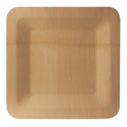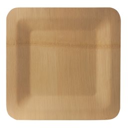 Borden van Bamboe "Pure" Rechthoek 15 x 230 x 230mmDeze rechthoekige bamboe borden zijn een milieuvriendelijke keuze voor jouw bedrijf. Ze zijn biologisch afbreekbaar en hebben een duurzame uitstraling. De unieke nerfstructuur van het bamboe maakt elk bord uniek. Ze zijn lichtgewicht, gemakkelijk te hanteren en sterk genoeg om zware gerechten te dragen. Gemaakt van bamboe, een snelgroeiende en hernieuwbare bron, helpen deze borden jouw bedrijf zijn ecologische voetafdruk te verkleinen.