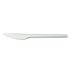 Messen Wit CPLA "Folia" Extra Stevig 190mm (Klein-verpakking) 50 stuks Deze messen zijn gemaakt van CPLA, een volledig hernieuwbaar plantaardig materiaal, waardoor ze 100% composteerbaar zijn. Met een lengte van 190mm zijn ze geschikt voor diverse gerechten en hun extra stevige constructie maakt ze bestand tegen intensief gebruik. Ideaal voor evenementen, feesten of in de kantine. De witte kleur zorgt voor een net en stijlvol accent. Geleverd in een handige klein-verpakking van 50 stuks. Een bewuste keuze voor bedrijven die duurzaamheid en milieuvriendelijkheid hoog in het vaandel hebben staan.