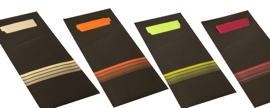 Bestekzakjes - Pochettes Zwart Crème "Stripes" 200 x 85mm Inclusief 2 Laags Gekleurde Servet 330 x 330mm