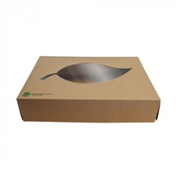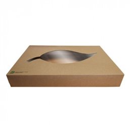 Kartonnen Cateringdozen met Pla Venster 100% Fair 35cm Deze stevige cateringdozen zijn ideaal voor het vervoeren van diverse cateringgerechten. Ze zijn voorzien van een biologisch afbreekbaar PLA venster en gemaakt van FSC karton, wat ze een duurzame keuze maakt. De dozen worden plat geleverd, zijn eenvoudig op te vouwen en goed stapelbaar. Ze zijn geschikt voor cateringschalen van 35cm, met name de bijpassende Cateringschaal "100% Fair" Karton Bruin Met Hengsels 35cm. Met deze dozen bied je jouw klanten een 100% biologisch afbreekbare verpakking.