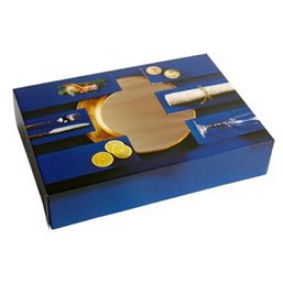 Cateringdozen "Bordeaux" 55cm Deze elegante Bordeaux cateringdozen met wijnfles opdruk zijn een favoriet onder onze klanten. Ze zijn stevig, stapelbaar en ideaal voor transport en opslag. Vervaardigd door een Nederlandse fabrikant, worden ze plat geleverd voor eenvoudige montage. Het venster in de doos biedt een sneak peek van de inhoud, perfect voor presentaties. Geschikt voor cateringschalen van 55cm.