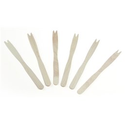 Fritesvorkjes Hout "Pure" 85mm Deze fritesvorkjes, gemaakt van natuurlijk licht berkenhout, zijn een duurzame keuze voor jouw bedrijf. Ze zijn biologisch afbreekbaar en composteerbaar, wat bijdraagt aan een kleinere ecologische voetafdruk. De vorkjes zijn niet gebleekt, waardoor ze hun natuurlijke kleur behouden. Ze zijn splintervrij door een speciale oppervlaktebehandeling, stevig en smaakneutraal. Met een lengte van 85mm zijn ze handig in gebruik. Ideaal voor bedrijven die duurzaamheid en kwaliteit hoog in het vaandel hebben staan.