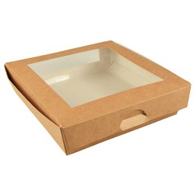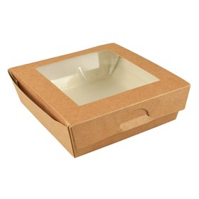 Cateringdoosjes Saladebakken 1280 ml Bruin karton Met PLA Venster "Pure" 160 x 160 x 50mm