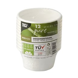 Sauscupjes van Papier "Pure" Rond 35ml Ø 40 x 31mm Wit Deze papieren sauscupjes "Pure" zijn ideaal voor bedrijven die hun klanten een kwalitatieve ervaring willen bieden. Ze zijn gemaakt van milieuvriendelijk, biologisch afbreekbaar en recyclebaar papier. Met een inhoud van 35ml zijn ze perfect voor het serveren van diverse sauzen. De witte kleur geeft ze een strakke, moderne uitstraling. Ze zijn wegwerpbaar, wat tijd en moeite bespaart. Geschikt voor zowel koude als warme sauzen. Let op: niet geschikt voor gebruik in de magnetron of diepvries. Verkrijgbaar in verschillende maten.