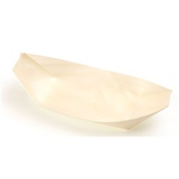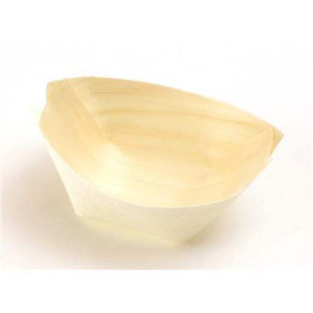 Wooden Boats "FSC" 65 x 42mm - These sustainable boats, made from FSC-certified wood, are perfect for serving small snacks like cheese and sausages. Ideal for restaurants and catering companies, they offer a rustic charm and a unique dining experience while supporting responsible forestry.
